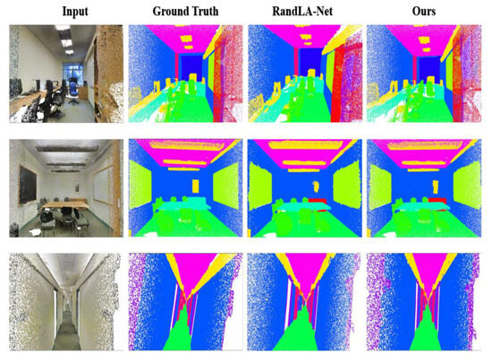 - Hu, Q.; Yang, B.; Xie, L.; Rosa, S.; Guo, Y.; Wang, Z.; Trigoni, N.; Markham, A. Randla-net: Efficient semantic segmentation of large-scale point clouds. In Proceedings of the IEEE/CVF Conference on Computer Vision and Pattern Recognition, Seattle, WA, USA, 13–19 June 2020; pp. 11108–11117. [Google Scholar]