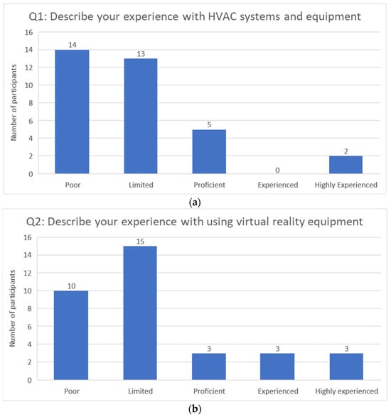 Experience levels of participants with HVAC systems and VR technology. (a) Survey results with HVAC experience; (b) survey results with VR experience.