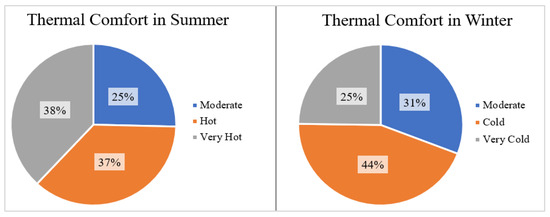 Ensuring optimal thermal comfort within school environments is crucial because it profoundly impacts students’ academic performance and overall health. Maintaining proper indoor temperatures and humidity rates dramatically impacts students’ ability to learn effectively [32]. Extreme temperatures, both extreme cold and extreme heat, have been linked to decreased student cognitive functions and academic performance. Ref. [33] proved that students in classrooms with comfortable temperatures show increased attention spans, better memory retention, and improved academic achievements compared to those in an unfavorable learning environment. Additionally, Ref. [34] emphasized that comfortable thermal conditions reduce discomfort and distraction, resulting in fewer health-related issues such as fatigue, headaches, and irritability among students.