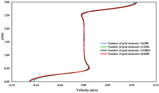 In this study, a structured mesh based on a rectangular grid was used, and grid independence was tested utilizing four cases of meshes with mesh numbers of 62,908, 112,356, 132,804, and 164,388 (Figure 3). Simulations were applied on a structured, refined mesh in the channel, contiguous to the wall.