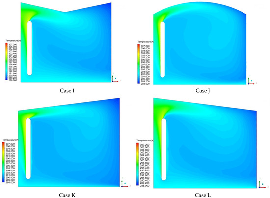 Contours of the indoor air temperature for the roof configurations with a rounded T-wall.