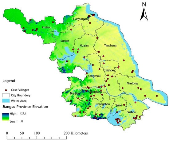 Firstly, Jiangsu is a highly urbanized coastal economic province, and the urbanization rate of the resident population in Jiangsu Province has reached 74.42%, placing it among the top three in China. As a representative highly urbanized region of the Yangtze River Delta and China, Jiangsu is experiencing a more intense rate and magnitude of urban expansion. Thus, its unique livelihood industry, agricultural landscape, demographic composition, and regional characteristics of traditional villages are under serious threat. Still, the industrial and economic capital accumulated through rapid urbanization can support the region’s pioneering efforts in green transformation. This research sample in Jiangsu will be of great value for solving the problems of sustainable rural development, promoting the sustainable use of ecological resources, civilization inheritance, talent and creativity cultivation, and the continuation of national memory in rural areas [].