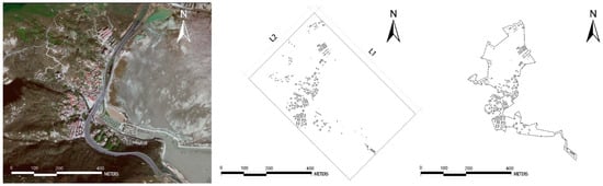 Among the architectural terms that quantitatively describe a settlement space, the most classic is the building density index. This is the ratio of the base area of the village’s buildings to the graphical area of the settlement boundary, which directly reflects the building density of settlement buildings in the village. The calculation formula is as follows, where M is the settlement building density, S’ is the total area of the village building base, and A’ is the area of the settlement boundary graph: