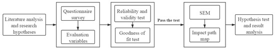 The SEM is a statistical method for analyzing the relationships between variables and is often used to measure causal relationships between latent variables [53]. SEM has been widely used in the research field of prefabricated buildings. The existing studies have analyzed the influencing factors of the construction quality of prefabricated buildings [54], the influencing factors of the prefabricated building construction risk [55], and the influencing factors of the prefabricated building supply chain elasticity [56], and explored the relationship between various factors by using SEM. With the development and application of SEM, some scholars have applied SEM to the study of the impact paths. Wang et al. analyzed the relationship between risk factors and identified the risk path of construction projects using SEM [57]. Qi et al. have used SEM to explore the elastic improvement path of the prefabricated building supply chain [58]. In recent years, SEM has been widely applied to study the impact paths of incentive policies, such as environmental protection incentive policies [59], information technology incentive policies [60], and marine economic policies [61]. Compared to traditional quantitative methods, SEM can more effectively explain the impact path of incentive policy through hypothesis models [62]. Therefore, it is reasonable to use SEM to explore the impact path of PBIP.