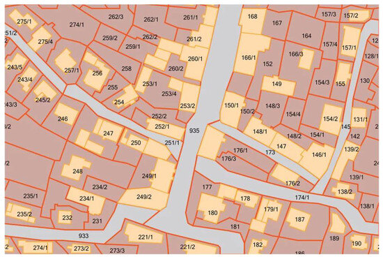 An urban plat map of lots, blocks, and plots, is the basic planning tool in every city. One of its major functions is to define the private vs. the public domains in the city (Figure 12). On the face of it, Figure 12 represents a clear-cut bistable structure: private lots with their buildings versus public streets with their pavements and roads, and nothing in between.