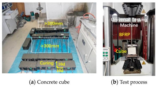 - The non-bonded part of the BFRP and cement substrates is placed in the mold and vibrated, as shown in Figure 4a.
