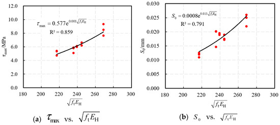 As can be seen from Figure 10, and are shown to be positively correlated with , indicating that the higher the concrete strength and the elastic modulus of HTRCS, the better the bond behavior between the interface of HTRCS and concrete. The high R2 values of the equation established by regression analysis indicate that the bond-slip model of HTRCS and concrete established in this paper has good accuracy. Furthermore, an accurate bond-slip model is also required for the establishment of an interfacial bearing capacity formula.