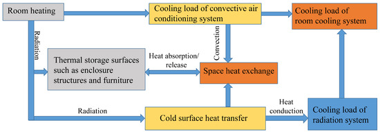 The process of heat transfer and cooling load formation in a space with a combined radiant cooling and air conditioning system [21].