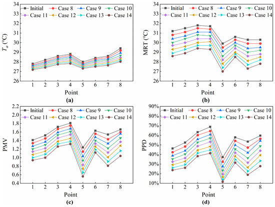 Secondly, the index of PMV–PPD was used for evaluating the thermal environment of the large space building in the research, but its absolute value was higher than the subjective human perception value. Thus, the human subjective feeling in the optimization scheme should be more comfortable than the predicted PMV value in the simulation.