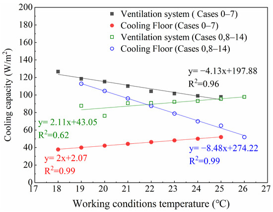 Hence, the sensible cooling load of air conditioning systems, and the cooling capacities of radiant cooling systems and the combined system can be obtained by Equations (1)–(3), respectively.
