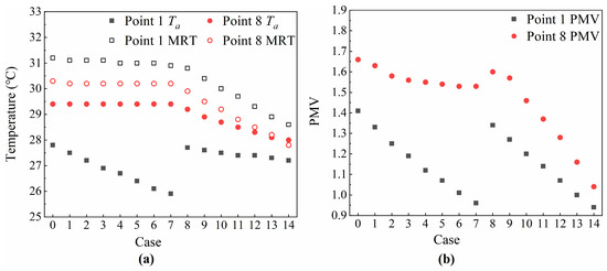 Mean radiant temperature and black bulb temperature. (a) Mean radiant temperature. (b) Average black bulb temperature.