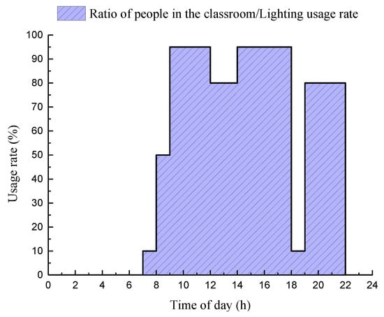 After consulting relevant standards and performing statistics through field investigation, data such as the occupancy rate, lighting utilization rate, and electrical equipment utilization rate were obtained, as shown in