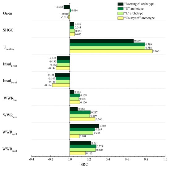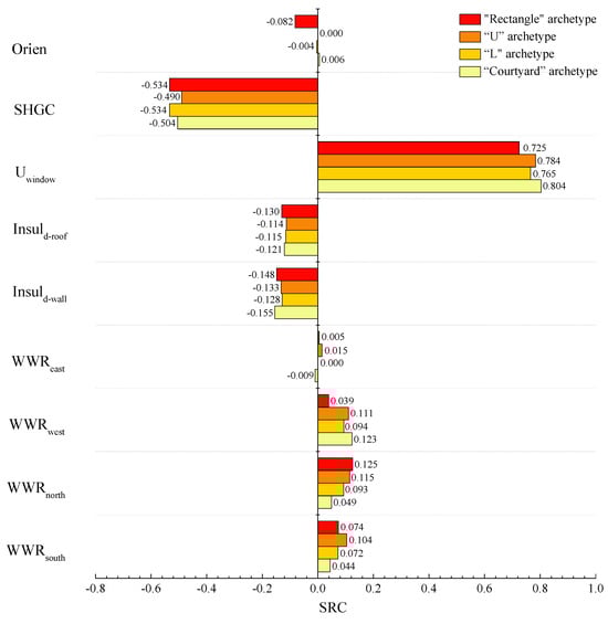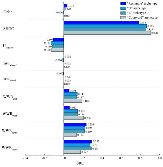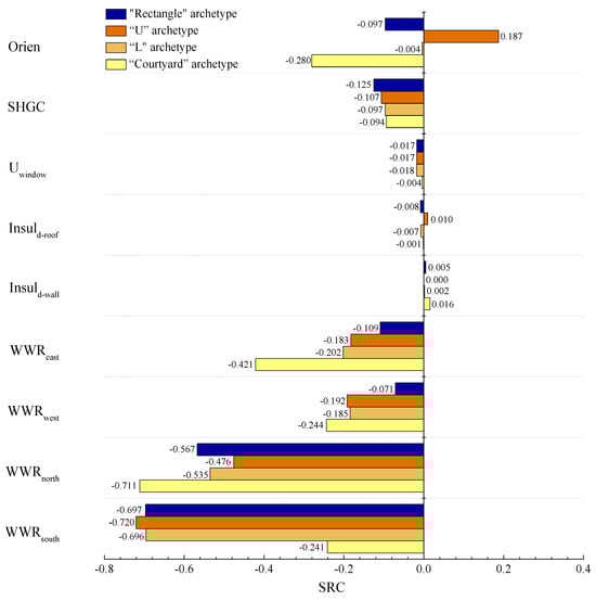 25], meaning each variable is adjusted by subtracting its mean and dividing by its standard deviation. The absolute value of the SRC reflects the sensitivity of a parameter; a larger absolute value indicates higher sensitivity. The sign of the SRC determines the direction of the relationship between independent and dependent variables: a positive SRC suggests a positive correlation, while a negative SRC indicates a negative correlation [