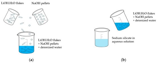 | Geopolymer Mixture | MGS-1 (Milled) | Metakaolin | NaOH Pellets | LiOH·H2O Flakes | Na2SiO3 Solution | Water a |
