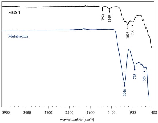 3.3.1. Precursors: MGS-1 and Metakaolin