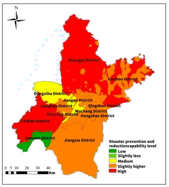 Disaster Prevention and Mitigation Capability level distribution map of flood disasters in Wuhan City.