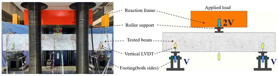where denotes the cross-sectional area of the stirrups, represents the spacing of the stirrups, is given by to determine the lever arm of internal forces, and indicates the stirrup yielding strength. It was assumed that the non-stirrup UHPC beams tested in this study had no shear contribution from stirrups.
