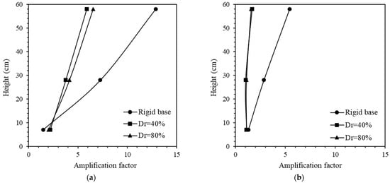 Amplification factor of the rigid-based structures (0.3 g): (a) 4.09 Hz; (b) 18.45 Hz.