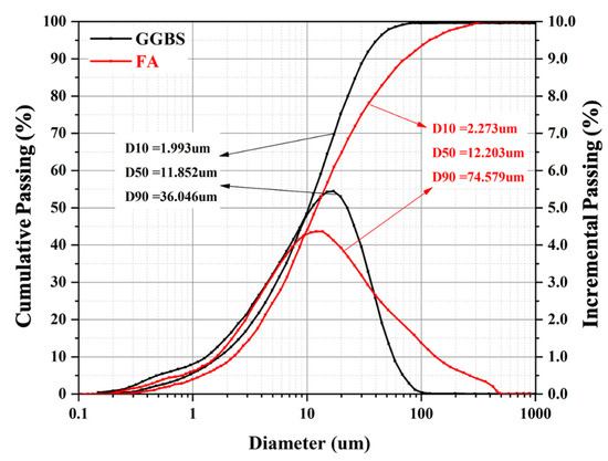 Figure 1. The particle size distribution of GGBS and FA.