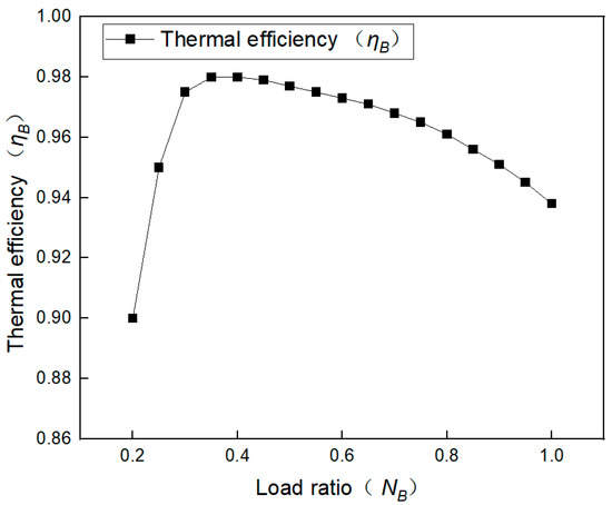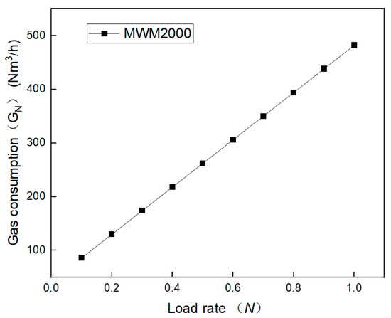 The calorific value of the gas () is 9 kWh/Nm3. Combined with the gas consumption from Equation (1), Equation (4) shows the rule of generating capacity varying with load rate.