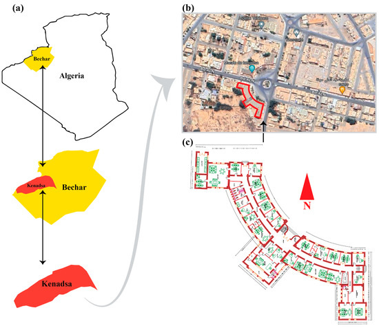 In the context of the Saoura region (an Oasis in Berber) of Bechar, more precisely in Kenadsa city, which is considered one of the most famous Oases in Algeria [21,22], Kenadsa’s administrative heritage office building is considered one of the most important institutions that participate in improving the institutional services for its inhabitants in this Saharan city. Therefore, our study focuses on evaluating Kenadsa’s heritage office building, and the main objectives of this study are: