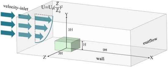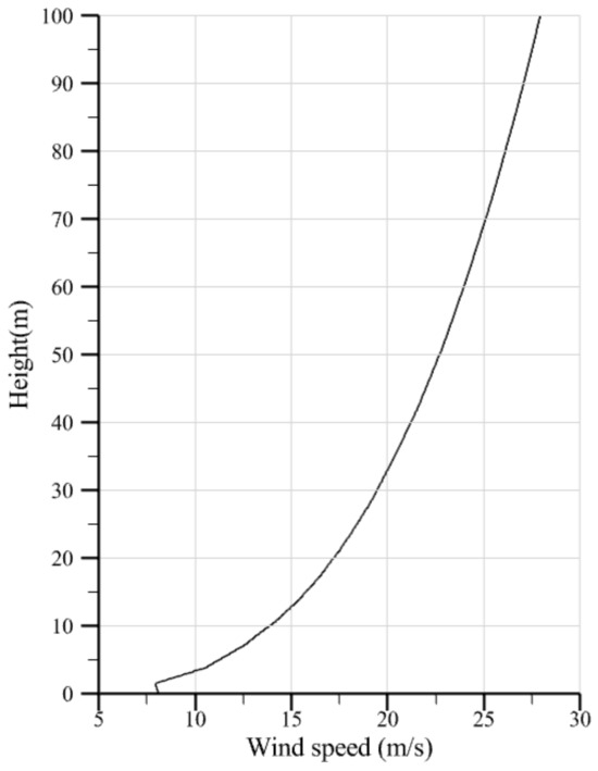The boundary conditions are set as follows: The turbulence model adopts a velocity inlet at the entrance boundary (Figure 6), with the inflow speed based on gradient wind. The reference height is set at 1H, and the flow velocity is adjusted according to operational conditions. The tree canopy is defined as an interior surface. The k-ε turbulence model is utilized for the turbulence modeling. The ground roughness is set at 0.3 in accordance with Chinese load standards, and the surrounding boundaries are defined as no-slip stationary walls (wall).