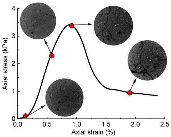 X-ray Computed Tomography (CT) scanning is a non-destructive testing technique that offers significant advantages, including precision, rapidity, non-destructiveness, and visualization. This method has been widely utilized in the examination of cement-based materials in recent years [25]. Many researchers have expressed interest in incorporating CT scanning technology for real-time monitoring of mechanical test procedures, in conjunction with advancements in testing methodologies. Wang et al. [26] performed in situ CT scanning on cemented paste specimens to investigate the micromechanical structural fracture characteristics and evolution process. An et al. [27] utilized CT scanning experiments to observe in real-time the cracks and morphologies of solid phase materials in slag-modified soil under loading, thereby examining the damage mechanism of the micromechanical structure. Li et al. [28] proposed a CT scanning technology to conduct micromechanical analysis under uniaxial loading conditions on coal. The study revealed the expansion pattern of destructive cracks and identified the initiation and propagation of micromechanical cracks as the primary characteristics of material failure. Sun et al. [29] performed real-time uniaxial compression and CT scanning tests on cement-based mixtures to investigate the influence of crack development on material failure properties. This study revealed a strong correlation between the crack propagation and the axial strains. The integration of mechanical testing and real-time CT scanning has emerged as a significant approach for evaluating structural damage in cement-based structures [30]. Nevertheless, there is a scarcity of literature on the application of this methodology in the realm of microstructural analysis of backfill body. The majority of prior studies in this field have primarily concentrated on crack development, without establishing a connection between cracks and structural damage as well as the stress–strain relationship. Therefore, there is an urgent need for experimental studies to delve deeper into this area.