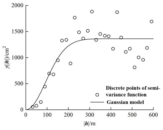 Figure 3, the cumulative horizontal displacements in the West Area of Chengchao Iron Mine in January 2015 were fitted using a Gaussian model for the semi-variogram function. Commonly used semi-variogram function models include spherical, exponential, linear, Gaussian, and power models [