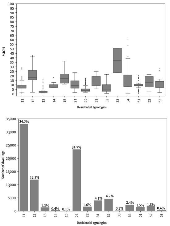 First, an analysis of residential typologies was carried out based on the mean %IOH and representativeness of each typology within the city (Figure 4).