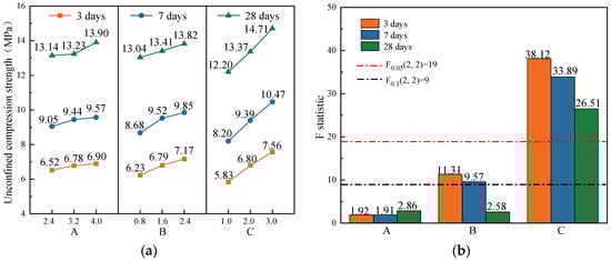 | A (%) | B (%) | C (%) | Viscosity (mPa·s) | Bleeding Rate (%) | Setting Time (min) | Permeability Coefficient (×10−6 cm/s) | UCS (MPa) | |||||