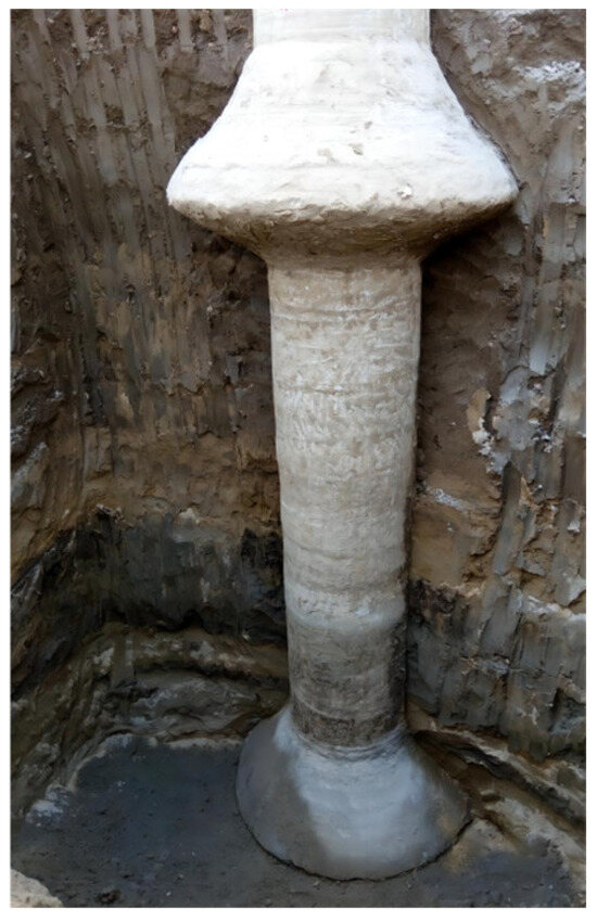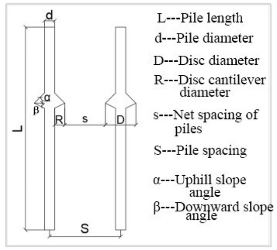 CEPs are a new type of variable cross-section concrete cast-in-place pile that has advantages such as high bearing capacity, small settlement, energy conservation, and environmental protection [6,7,8,9]. An engineering diagram of a CEP is shown in Figure 1. Some results on the compressive bearing performance of single and double CEPs have been obtained through research [10,11]. In practical engineering, CEP pile groups are widely used [8,12]. The spacing between the piles is an important factor that affects the failure mechanism and bearing capacity of CEP groups. Reducing the spacing between piles can reduce foundation settlement. However, the load borne by the piles is excessively large, making it difficult to fully utilize the bearing potential of the soil between the piles. Increasing the spacing between piles may not meet the requirements of bearing and deformation and can easily cause excessive stress concentration at the pile top [9,13]. Therefore, it is necessary to determine a reasonable spacing between piles to reduce costs, shorten the construction period, and improve engineering quality. Therefore, it is necessary to conduct in-depth research on the relationship between the bearing capacity of CEP groups and variations in pile spacing.