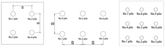 Figure 4. Layout plan of four piles, six piles, and nine piles.