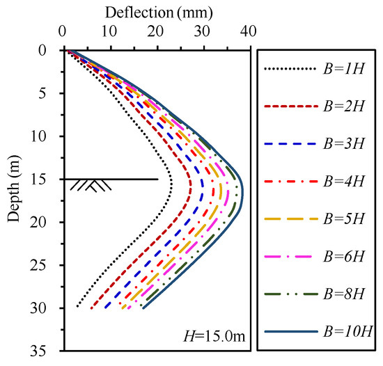 Figure 10. Variations in retaining wall deflections with excavation width.