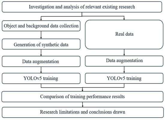 To experiment with the highest object-recognition performance across different ratios, the study constructed a hybrid dataset by adjusting the proportion of real and synthetic data. The dataset’s classification by type is presented in Table 3. The ‘real dataset’ comprises 1100 images for training, 830 for validation, and 317 for testing, totaling 2247 images. The test dataset consists of 317 images, utilizing the same real data to evaluate the performance across different composition ratios. The synthetic dataset includes 1100 training images and 950 validation images. The Hybrid Dataset 2:8 splits into 360 real images (20%) and 1440 synthetic images (80%) from a total of 1800 images. The ‘Hybrid Dataset 5:5’ is composed of 850 real images (50%) and 850 synthetic images (50%), totaling 2017 images, including the testing set. Of these, hybrid datasets are allocated into 1300 for training and 400 for validation. All four datasets were tested using the same set of 317 images. This test set contained images from the real dataset not used in training or validation.