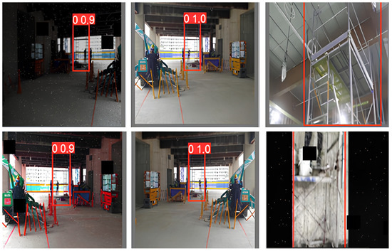 Figure 10 presents the results of frame scaffolding object recognition; the red box indicates detected scaffolding at a construction site. It demonstrates successful recognition of both the frame scaffolding in the augmented image and the non-augmented original image. The process of building a frame scaffolding synthetic dataset comprising 2000 images through synthesis and augmentation took approximately 40 min. However, it is worth noting that the proficiency of the tool may influence the presence of errors. Real data collected from construction sites often face challenges in securing diverse training data due to limitations in time and space. In contrast, synthetic data offer the advantage of generating various datasets by manipulating factors such as object position and size, even with a limited number of construction objects and backgrounds. Synthetic data can achieve a satisfactory performance with fewer real data compared to traditional methods, potentially easing the challenges of data collection at construction sites. Increasing the composition ratio of synthetic data while decreasing the proportion of real data seems to mitigate the challenges associated with actual data collection in construction sites, thereby offering a promising approach to address the difficulties in obtaining real data in such environments.