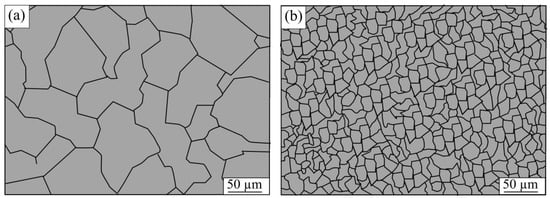 Austenite grain of steels with (a) 0.00 wt.% Nb and (b) 0.03 wt.% Nb. Adapted from Zhang et al. [].