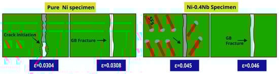 - Jha, R.; Bhuyan, P.; Mandal, S.; Pal, S. Insights into the role of Nb segregation on grain boundary structural transition and mechanical response in a Ni-Nb system. Mater. Chem. Phys. 2023, 299, 127531. [Google Scholar] [CrossRef]