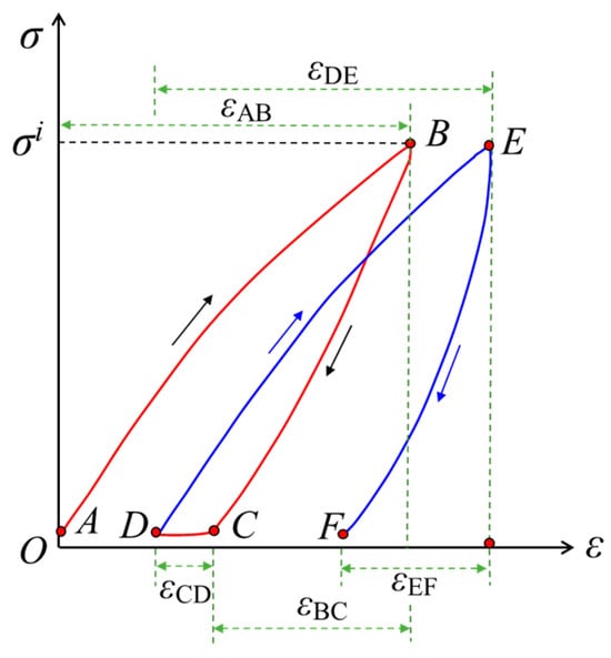 As shown in Figure 4, to simplify the explanation, the strain during the loading and unloading process under the i-th load is defined as follows: