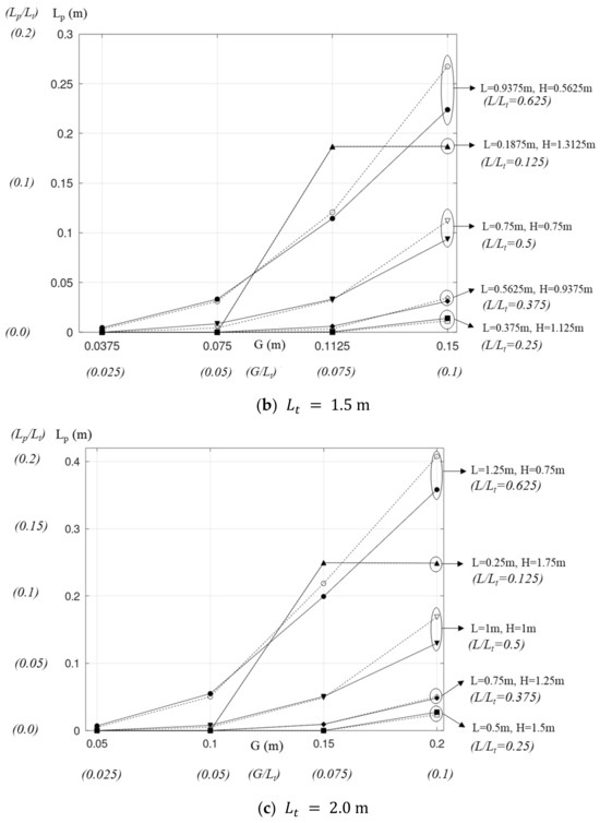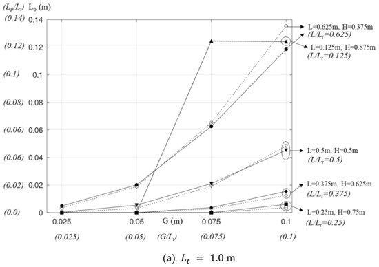 The lengths of the reverse flow in the combined chimney are presented in Figure 8. As seen for all values of , is 0 or ignorable at the lowest gap of . Further increases in both G and L show the following trends, which apply to all cases of .