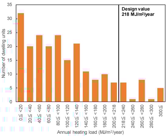 Frequency distribution of the annual heating load for each dwelling unit.