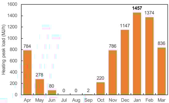 Heating peak load for all dwelling units in each month.