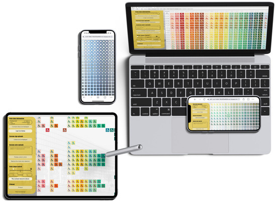 - Contrast Grid. Eightshapes. Available online: https://contrast-grid.eightshapes.com/ (accessed on 26 March 2023).