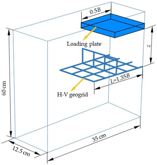 Schematic diagram of sand bed reinforced with multilayer H–V geogrids.