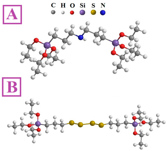 Representation of the two most commonly tested bis-silanes in metal surface treatment: (A) bis-aminosilane and (B) bis-tetrasulfidesilane; reprinted from [40].