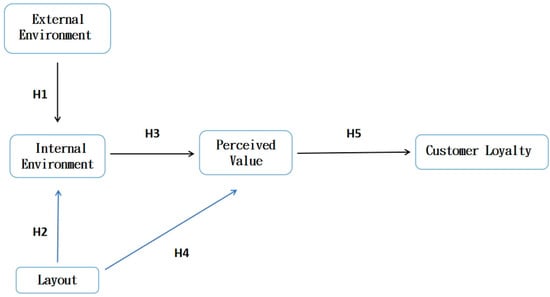 The study by Lewison [84] indicates that store layout influences shopping atmosphere, shopping behavior, and customers’ perceived values. Layout is considered a key element driving purchase intention and perceived value [30,66,67,85,86]. An appealing layout can also fulfill hedonic needs [87]. This implies that a well-designed layout in theme hotels can create a positive ambiance, enhancing guests’ value perceptions. Therefore, the fourth hypothesis is proposed as follows: