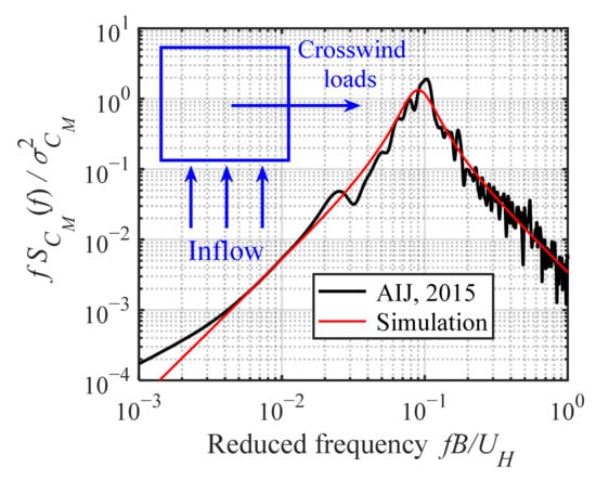 The cross-power spectral density of fluctuating wind loads on the i-th and j-th stories can be derived from the base bending moment according to the Japanese code [,]