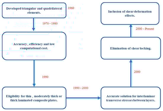 Several researchers have invested significant efforts in developing diverse approaches for analyzing laminated composite plates. The preceding discussion includes a concise overview of prior studies conducted on composite laminated plates. However, the literature search encompasses all relevant studies, offering a historical review and advancement analysis of the below-mentioned approaches, as illustrated in Table 3.