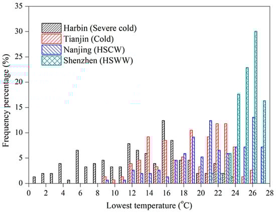 Daily low temperature frequency in research cities. Reprinted with permission from Ref. [].