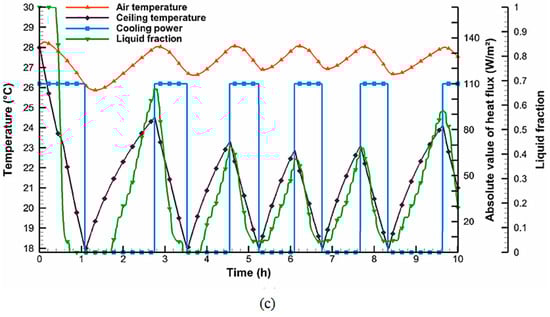 Thermal properties of (a) Fez, (b) Ifrane, and (c) Marrakech rooms with cooling ceilings and PCMs. Reprinted with permission from Ref. [].