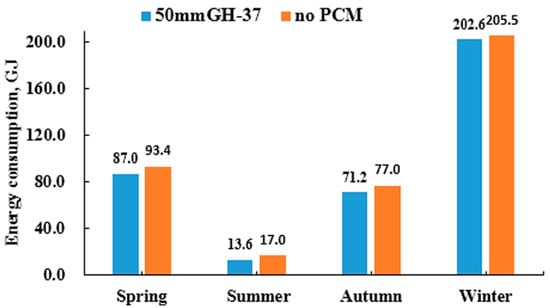 Building energy consumption with PCM/WPC roof modules. Reprinted with permission from Ref. [].